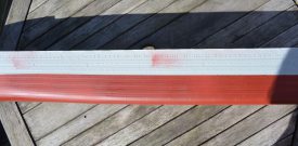 Opération inverse, bien recouvrir le rouge.  Pour être bien net je remet un tape comme ligne de flottaison juste en dessous du bord rouge.  Comme cela on aura une ligne nette.  Pas mettre le tape contre le rouge vous n’aurez pas une ligne nette.